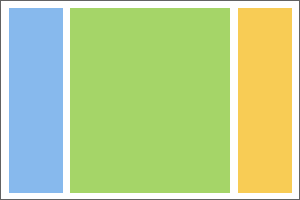 Für das drei-spaltige Layout in der Mitte gelten die unten gezeigten Regeln: wenn eine Spalte leer gelassen wird, verschiebt sich das Layout entsprechend. Nur die rechte oder nur die linke Spalte zu verwenden und die anderen beiden leer zu lassen, ist nicht vorgesehen.
