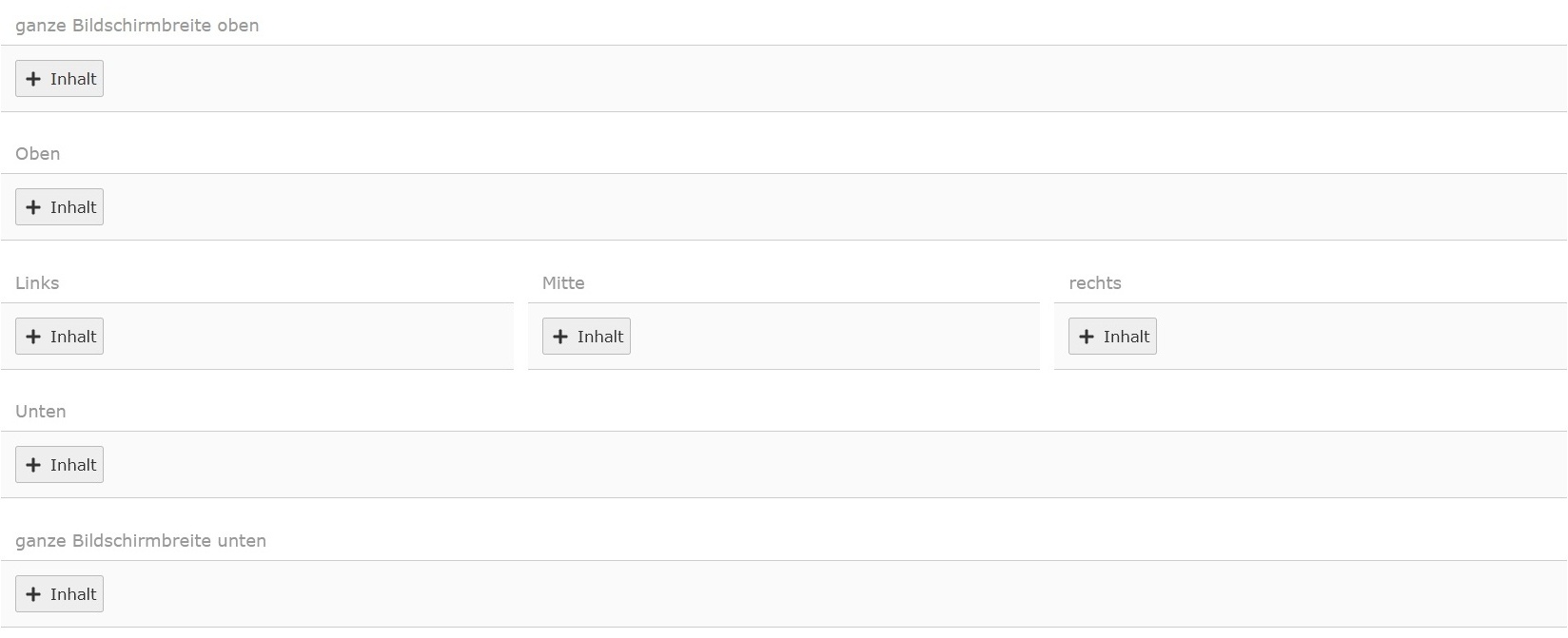 Wenn also z.B. der Inhalt der Seite sich nur über eine breite Spalte erstreckt, wird nur das Feld »Oben« mit Inhaltselement(en) gefüllt.